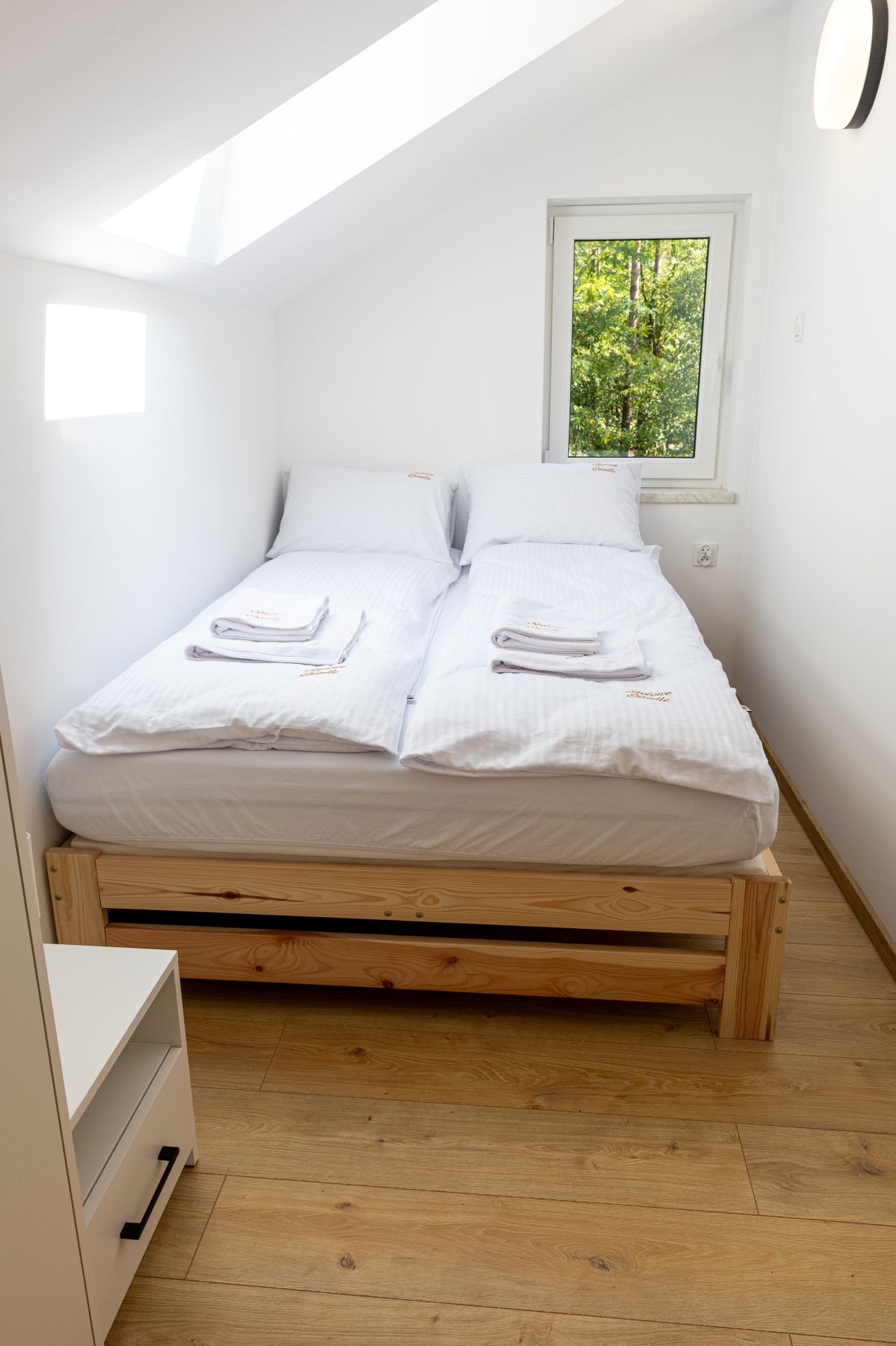 Typ domku: Domek z 2 sypialniami na piętrze plus rozkładana sofa w salonie plus 2 łazienki