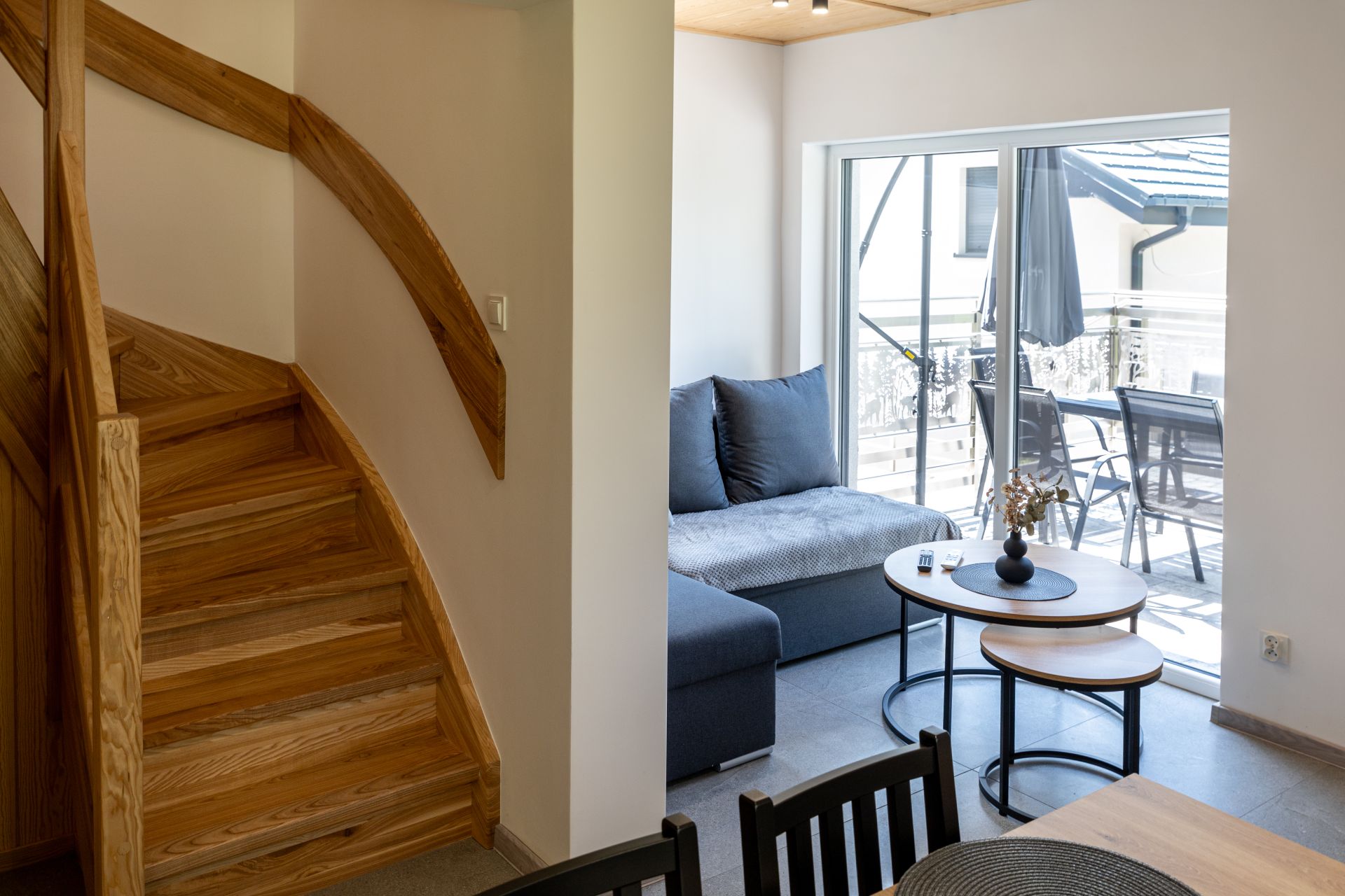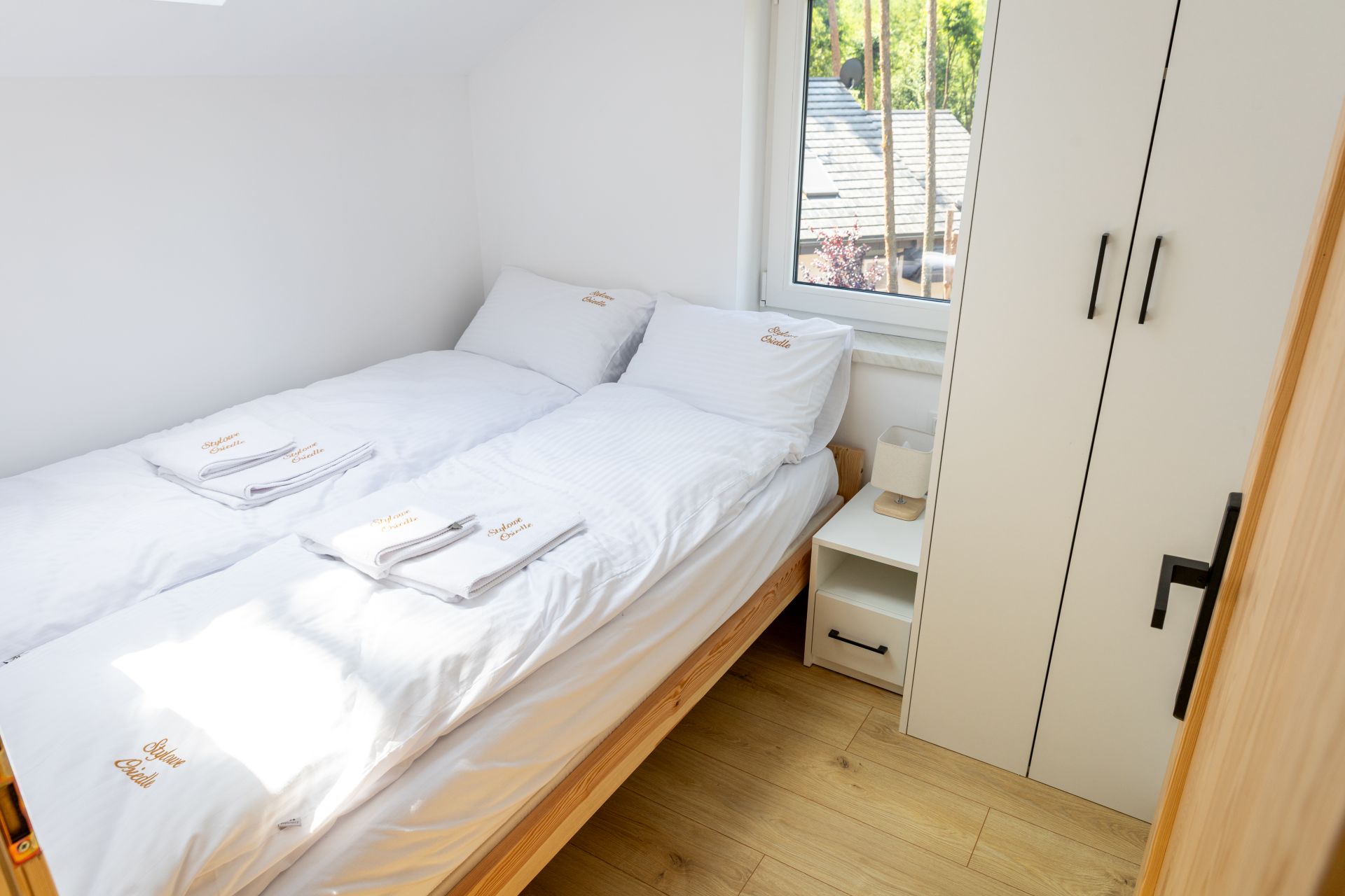 Typ domku: Domek z 3 sypialniami na piętrze plus rozkładana sofa w salonie plus 2 łazienki